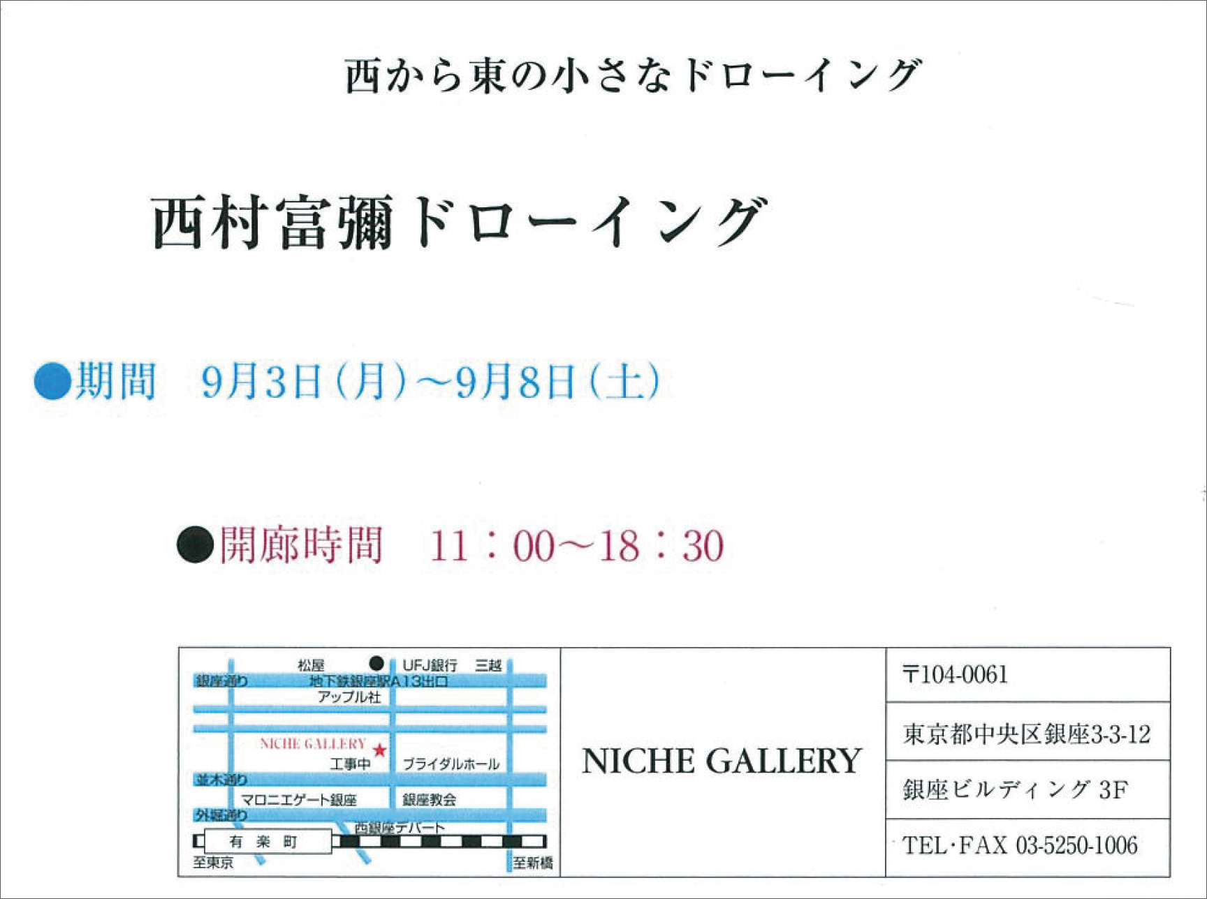 【展覧会情報】西村冨彌 ドローイング「西から東の小さなドローイング」(NICHE GALLERY/銀座)