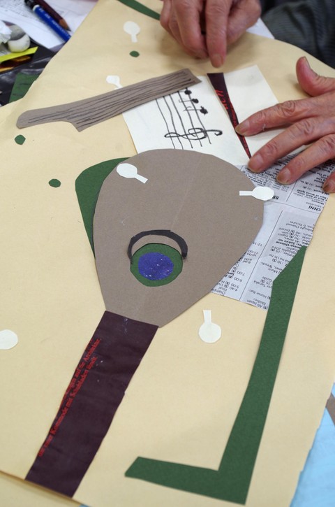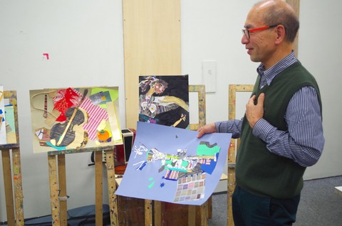 「コラージュはいろいろな制作に役に立つものです。ピカソやブラックはコラージュを使いキュビズムを発展させた、色面分割の構成で、晩年まで表現し続けています。