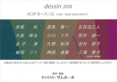 【展覧会情報】遊馬賢一 グループ展『dessin 2018』(ぎゃらりいサムホール/銀座)