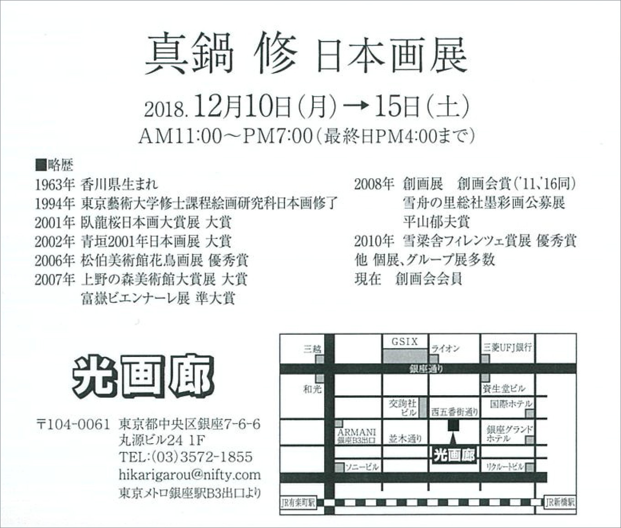 【展覧会情報】真鍋修 個展(光画廊/銀座)