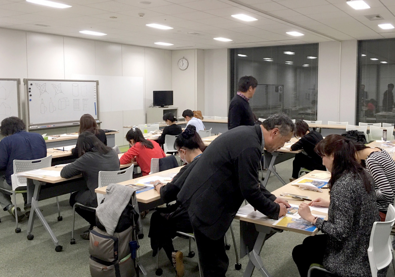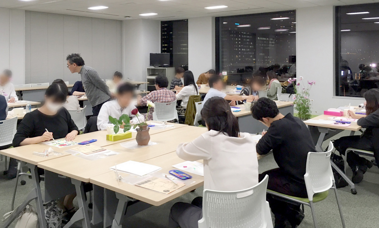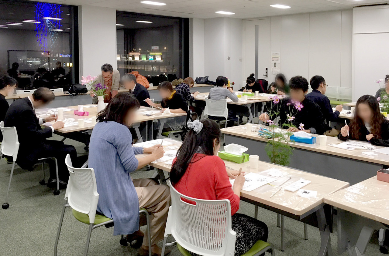 オフイスタワーにお勤めの方を対象に、11/13,14、水彩画、水墨画(出射先生)、11/30,12/7、万年筆画講座(古山先生)、計4回各2時間の講座を開催。どの講座も18〜20名の方が参加されました。
