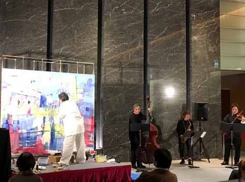 出射先生と音楽家3名によるアートパフォーマンスの様子
