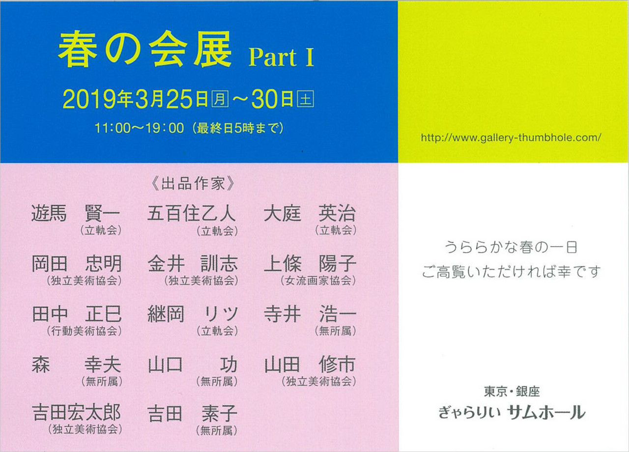 【展覧会情報】遊馬賢一 グループ展『春の会展 PartⅠ』(ぎゃらりいサムホール/銀座)