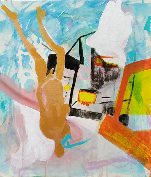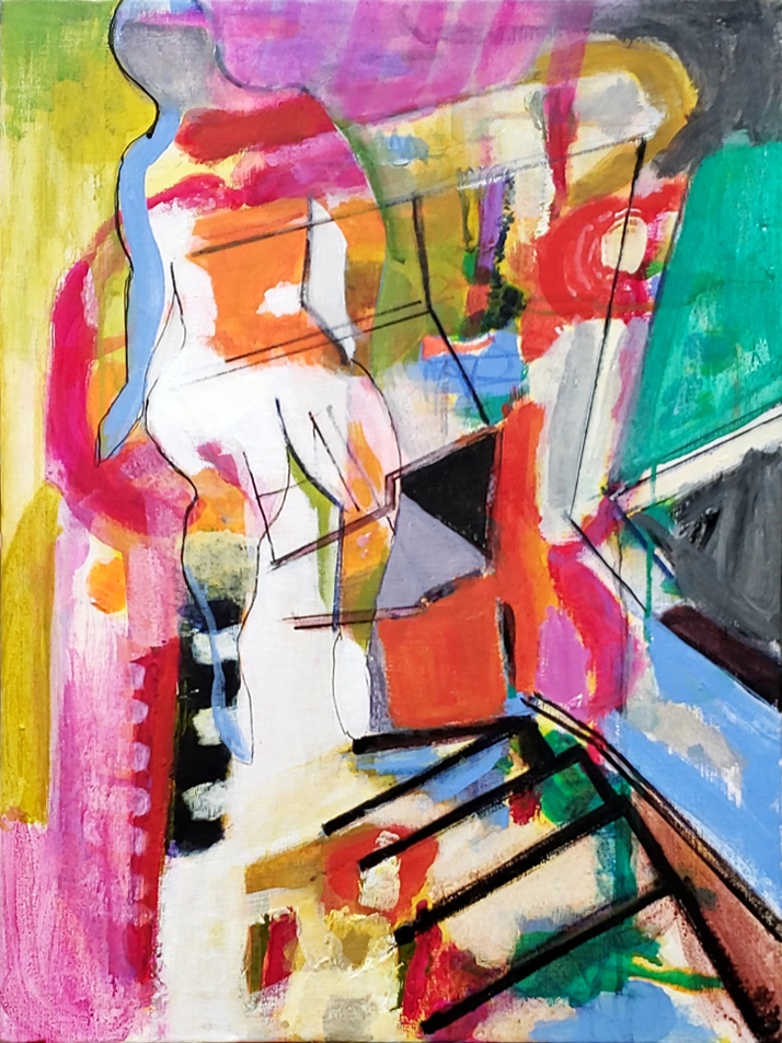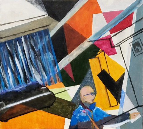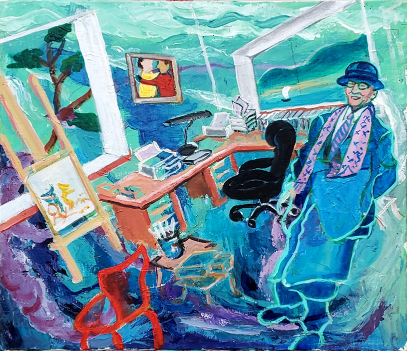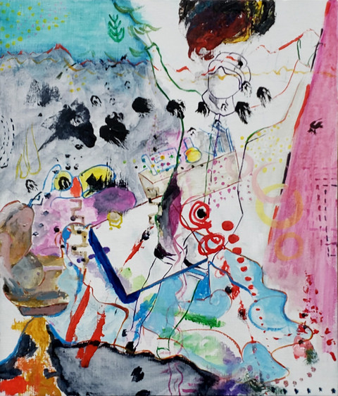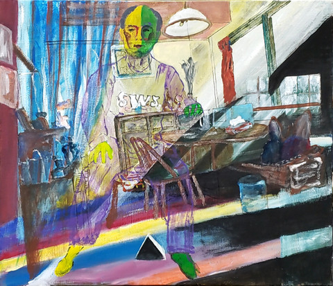 初めに描いた抽象を残しながら自画像と部屋の絵を層として重ねること。