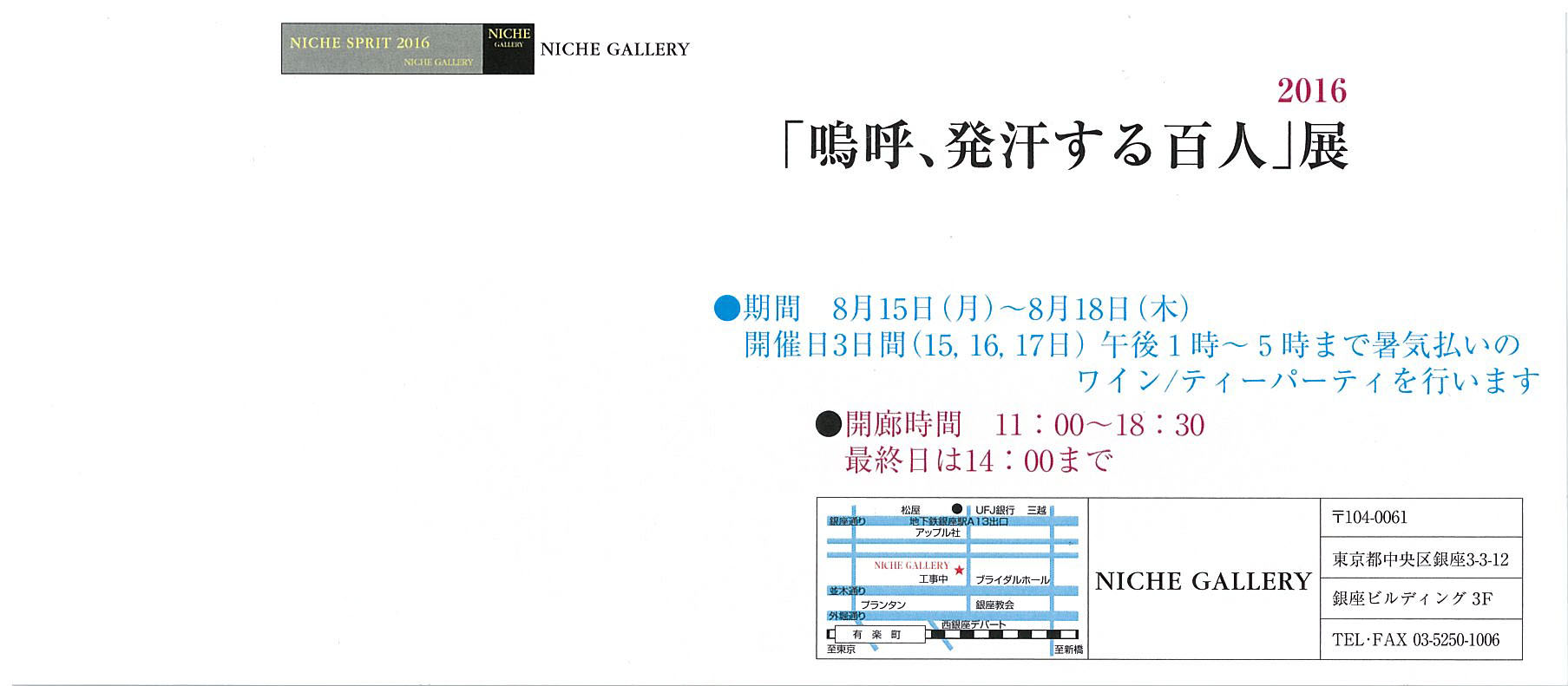 会期:2016年8月15日(月)〜8月18日(木)11:00〜18:30 ※最終日14:00まで