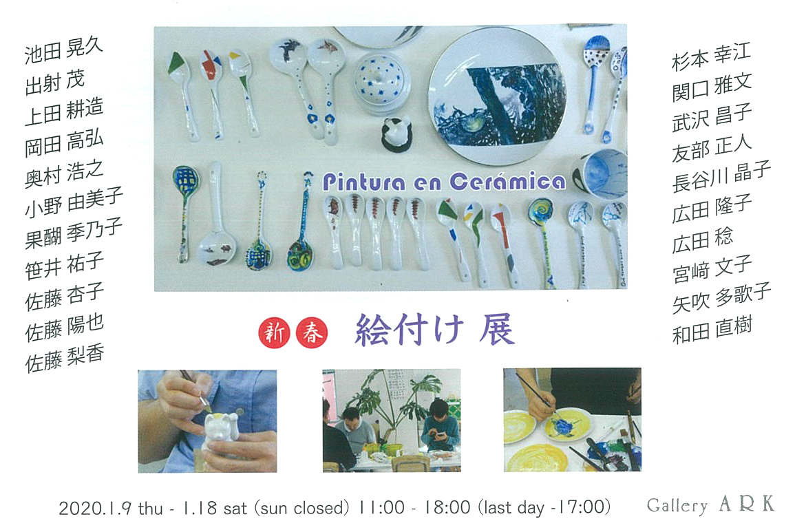 【展覧会情報】出射 茂 グループ展『新春 絵付け展』(Gallery ARK/横浜) 2020年1月5日 講師出射茂先生のグループ展のご案内です。ぜひご高覧ください。「新春絵付け展」会期:2020年1月9日(木)~1月18日(土)時間:11:00~18:00(最終日17:00迄) ※日曜休廊会場:〒231-0024 横浜市中区吉浜町2-4 AXIS元町ビル1F TEL / 045-681-6520 FAX / 045-211-1383