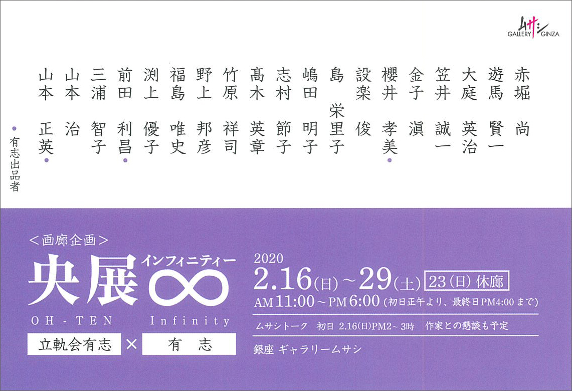 【展覧会情報】遊馬賢一 立軌会有志×有志『央展 ∞ インフィニティー』(銀座ギャラリームサシ/銀座)