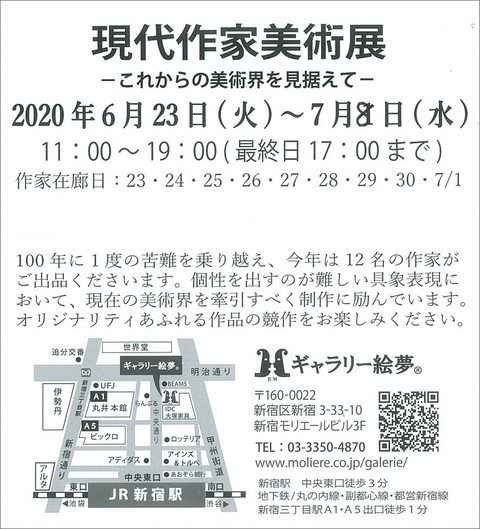 【展覧会情報】遊馬賢一 大見伸 グループ展『現代作家美術展』(ギャラリー絵夢/新宿)