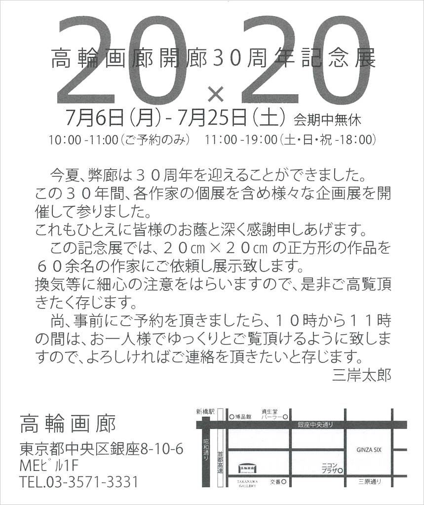 会期:2020年7月6日(月)〜7月25日(土)※会期中無休