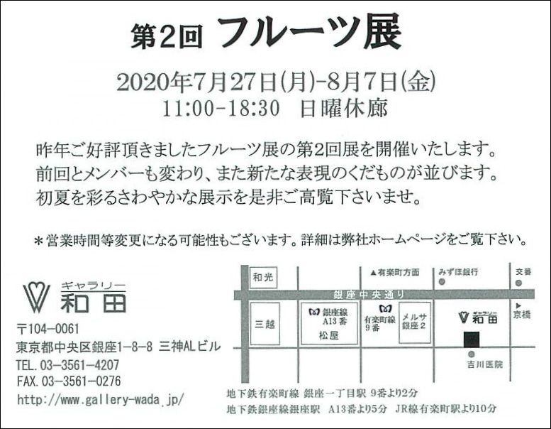 【展覧会情報】大見 伸 グループ展『フルーツ展』(ギャラリー和田/銀座)