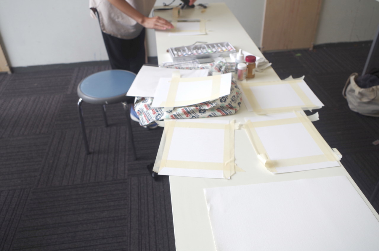 - 絵の具が乾いたらマスキングテープを剥がす。
