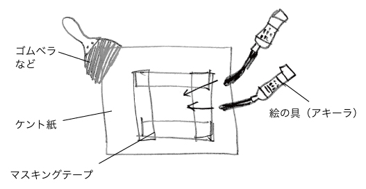 - ケント紙にマスキングテープを貼って15〜20cm程度の長方形の窓を作る。
