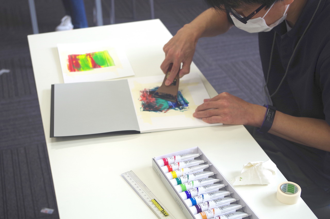 絵の具の偶然性に身をまかせ、どのように絵の具が動くのだろう?とワクワクしてみること。