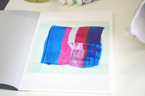 乾いたらマスキングテープを剥がして完成。絵の具の表情がかっこいい!