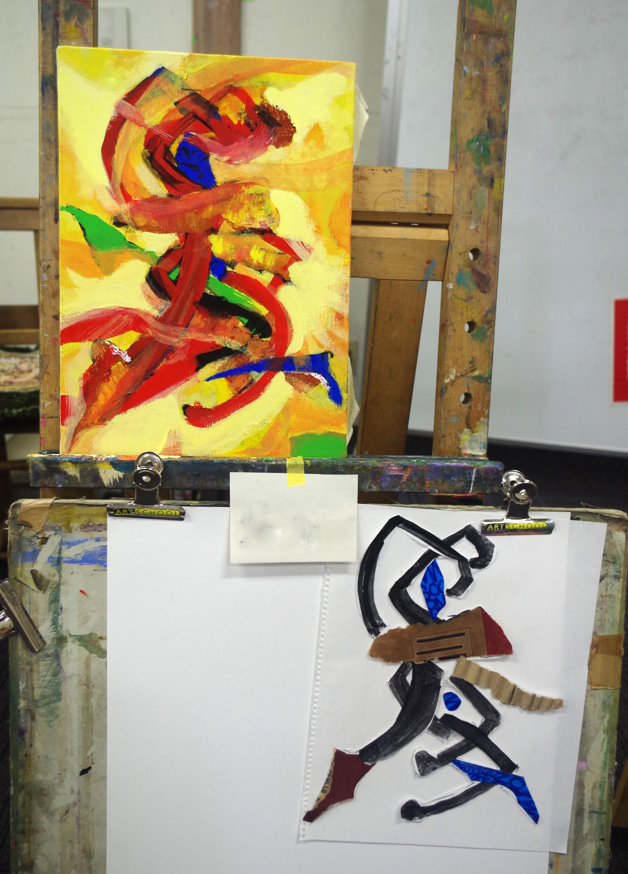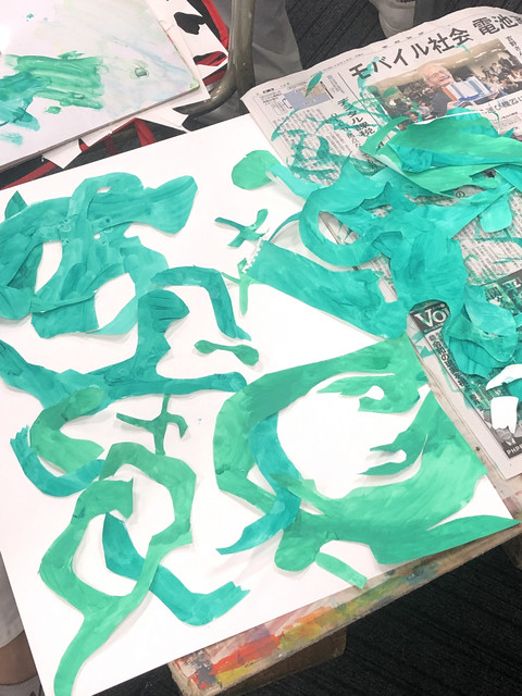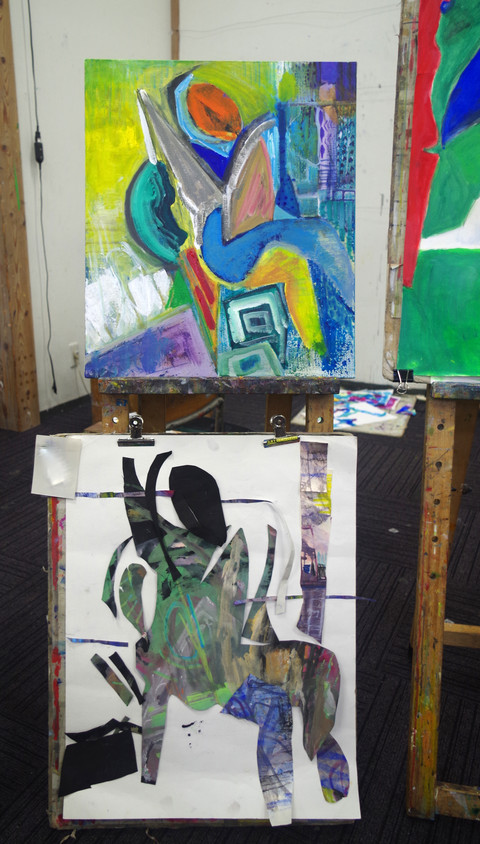 コラージュの技法を応用して、色面とかたちと空間を同時につくり出す試みの講座です。