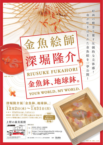 - 金魚の持つ神秘性に魅了され、創作をつづける現代美術作家、深堀隆介。深堀が用いる手法は何層にも重ねた樹脂とアクリル絵具で、まるで生きているかのような、立体的でリアルな金魚を描くという斬新なものです。