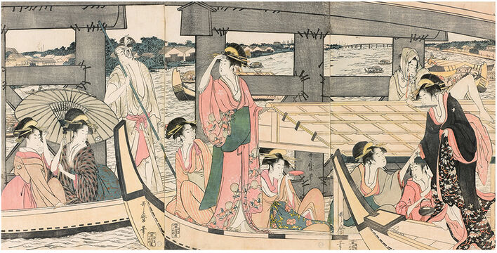 (下段左)喜多川歌麿「両国橋上橋下納涼之図(橋下の図)」