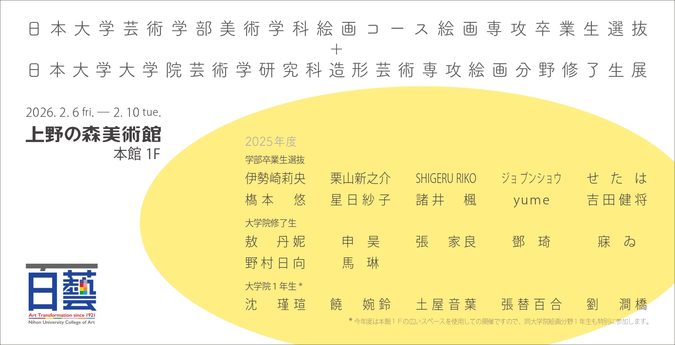 2025年度日本大学芸術学部 美術学科絵画コース絵画専攻卒業生選抜 + 日本大学大学院 芸術学研究科造形芸術専攻絵画分野修了生展Nihon University College of Art, Department of Fine Arts, Painting Course, Painting Major Graduate Selection + Nihon University Graduate School of Art, Department of Fine Arts, Painting Department Alumni Exhibition