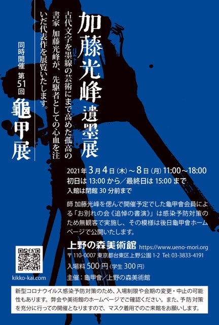 加藤光峰遺墨展 同時開催 第51回 龜甲展The 51st Kikko-kai Calligraphy Exhibition