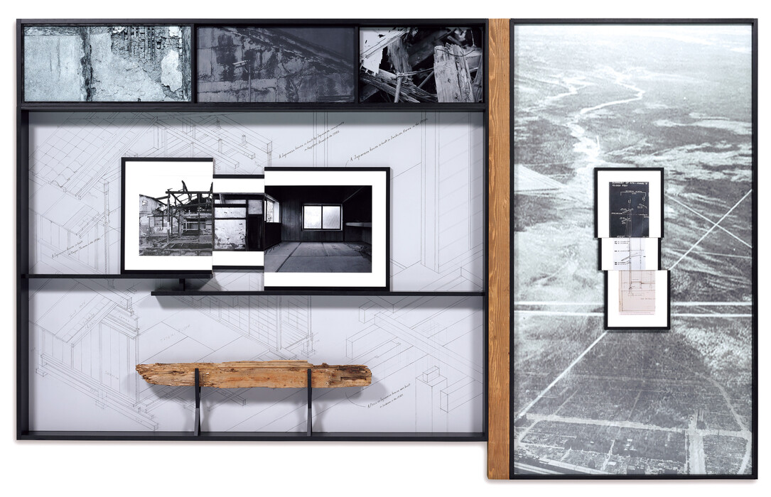 アクリル塗料・インク・鉄・アクリル板・インクジェットプリント・紙・韓国に存在した日本家屋の部材、木材227.5×364×18cm