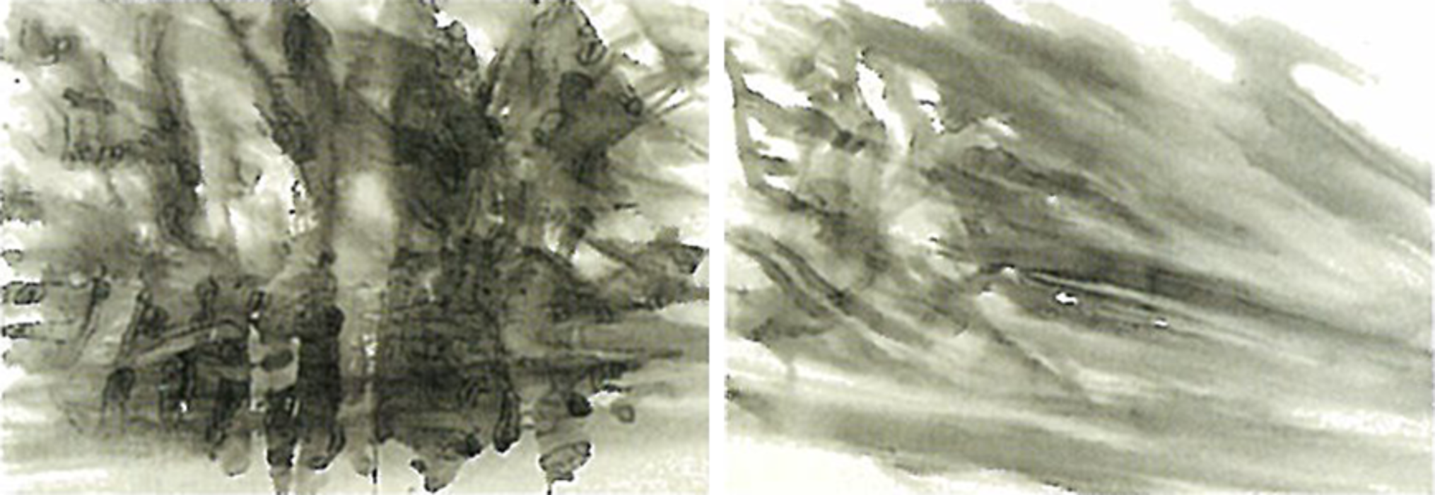 141㎝×200㎝×3.5㎝ (×2点) 墨、雲肌麻紙・パネル