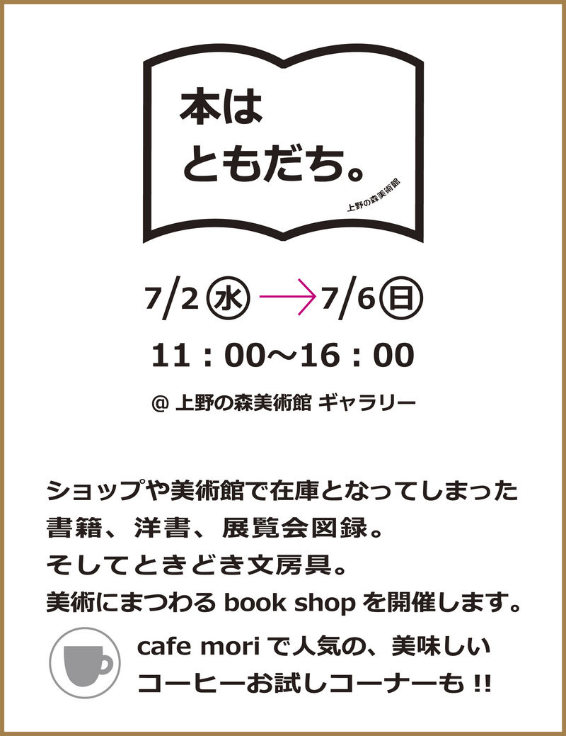 イベント 【 本はともだち。】上野の森美術館ギャラリーで新&古書市開催! 7/2(水)〜7/6(日)