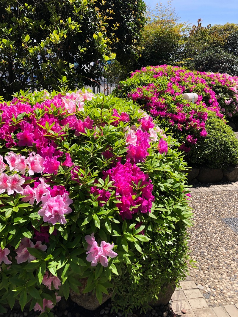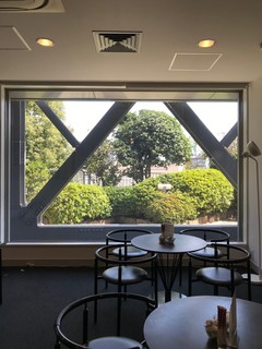 ツツジがきれいで! 2019年4月28日 植物園?いえいえ、上野の森美術館の中庭です。そういえば、昨年のこの時期は耐震補強工事のため、窓が覆われて外の景色がみられませんでしたね。でも、見てください!今年はご覧のとおり、cafe mori からお茶をしながらお楽しみいただけます。喫茶のメニューも、今のシーズンしか味わえない「桜のモンブラン」と、たっぷり二杯分のコーヒーと一緒にマカロンが味わえるセットなど、定番以外にもいろいろございます。最大10連休と言われる、今年のゴールデンウィーク。ぜひ、美術館にお出かけください!