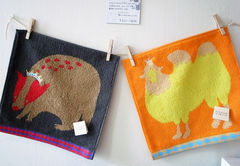 ミニタオル 2014年8月25日 いつまで続くのかこの暑さ。(と、思ったとたん、涼しくなってしまいました。。)8月も終わりだというのに、今さらながら、ミニタオルを入荷いたしました。ひびのこづえさんデザインの、すっとぼけた6匹の動物たち。そして、頭にはお揃いの小さな王冠の刺繍がワンポイントに入っています。カワイイですねー。少々厚手ですが、ふんわりした手障りはたまりません。お値段もお手頃の500円(税別)。25cm×25cm/綿100%お早めに。