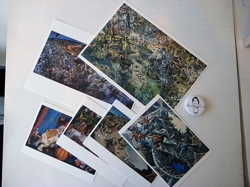 遠藤彰子展オリジナルグッズ<その2> 2014年1月19日 遠藤彰子展では、展示されている作品のポストカードが7種類あります。展示作品が多いので「え〜、それだけ?」と思われるかもしれません。。すみません。でもよりすぐりの、且つ、意外な作品でカードをつくりました。ポスターの図版を全体図でご紹介。メインの作品。街のシーズからなどなど。ポストカード・大→200円ポストカード・小→100円大作が多いので、大判のポストカードもご用意しました。それでもまだ「あら、小さいわね〜」とお客様のこえが。。そうおっしゃらず、ご了承ください〜。小さいカードも可愛い柄を選んでみましたので、記念にどうぞ。