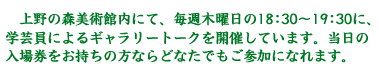 上野の森美術館では、毎週木曜日に作品を解説しながら巡る、18世紀のヴェネツィア絵画展「ギャラリートーク・ツアー」を開催しています。作品の中に描かれた、ひとつひとつを読み解きながら、絵画鑑賞をしてみてはいかがでしょうか?初回のギャラリートークでは、熱心に解説に聞き入る方が多く、あっという間の1時間でした。 ■日時 会期中毎週木曜日/18:30〜19:30 ■参加資格 当日の入場券をお持ちの方