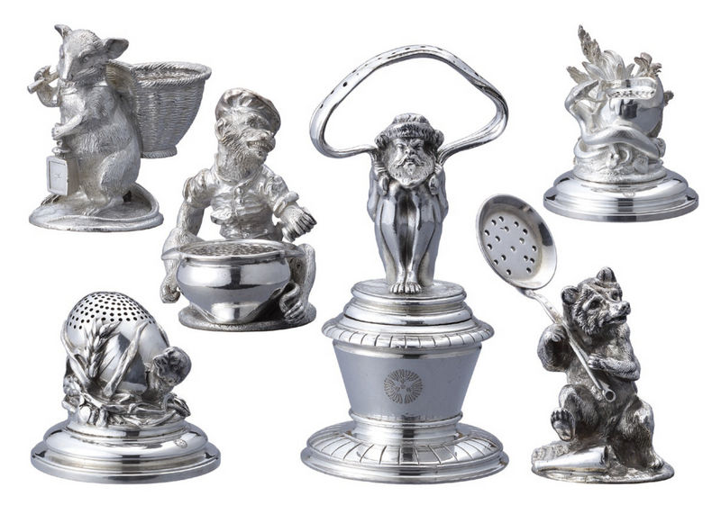 有栖川宮家の御紋が入ったディナーセットの中からピックスタンド(楊枝立て)を集合させたデザインです。